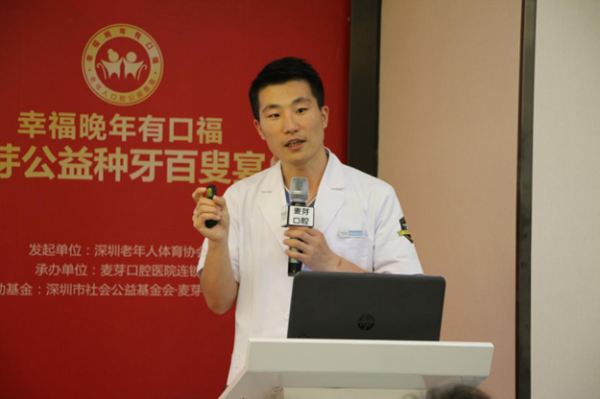 本次两地同开的“百叟宴”,麦芽南山机构种植技术院长杨超主持了南山机构分会场活动,并为现场嘉宾答疑解惑,还为缺牙朋友们开展了口腔种植牙知识讲座。杨院长是韩国奥齿泰AIC种植修复学讲师、瑞典Nobel种植/修复认证医师、中华口腔医学会种植专委会会员、国际种植牙专科医师学会中国总会理事,多次前往韩国、日本、法国、瑞士、意大利等地进行学术交流,注重技术,把握每个细节,用心感受患者的苦痛,因而深受患者的信赖。他说:“种植牙被称为人类第三类牙齿,相对于固定义齿、活动义齿传统的牙缺失修复方式,种植牙的优势更为明显,因而被越来越多的专业人士与市民接受。”正值爱牙日,杨院长表达了他的祝愿:“希望朋友们可以好好爱护牙齿,美好生活从‘齿’开始。”