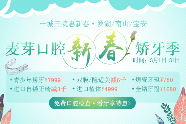 当美丽成为竞争力时,低颜值的人总将面临更多不公平,诸如求职易碰壁、表白易被拒、恋情总如泡沫等。据悉,脸型不佳如歪下巴、脸型不对称、小鸟嘴、弯月脸,多半与龅牙、牙列拥挤、错颌锁颌等牙齿畸形密不可分。随着人们生活水平的改善,矫牙成为了一种时尚,徐娇、小S、阿雅等明星纷纷成了牙套的“套友”。如果你也想提升颜值、塑美脸型、排齐牙齿?麦芽口腔3月新春矫牙钜惠就不要错过了!
