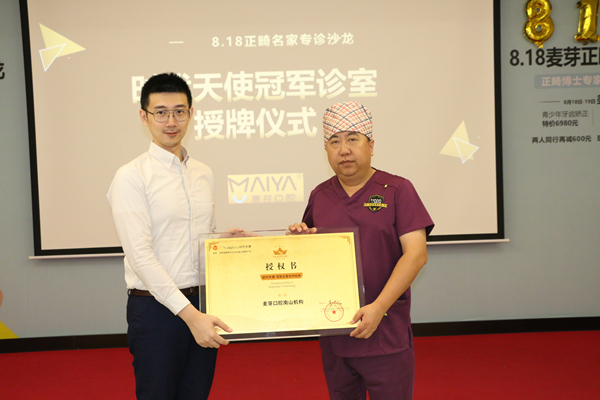 今年6月,隐形矫治器生产商时代天使与国家体育总局合作成立了“时代天使微笑冠军俱乐部”,麦芽口腔南山机构以优质的诊疗服务位列冠军诊室落地名单中!在本次麦芽正畸名家专诊沙龙南山机构会场,同时举行了冠军诊室授牌仪式。