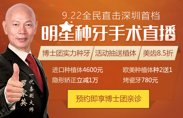 想知道种牙到底怎么样亲眼到现场看了就明了,“唐僧”罗家英邀您直击他自己的首档种牙show。看明星种牙享钜惠好礼,进口植体低至4600,活动抽送进口植体,更有美齿全线8.5折,您可以直接在线预约或者拨打我们的热线电话0755-82339968报名咨询。