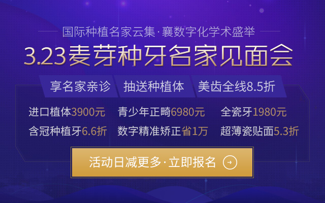 即日起通过网络预约报名参与3月23日麦芽种牙名家见面会的市民,活动当天到院都有机会赢得诺贝尔植体大奖及种牙代金券,种牙可叠加特价继续减免。三月不努力,四月徒伤悲,想要种上健康好牙,还是提前和种牙专家咨询一下更放心,点击下方预约报名,就能轻松约上种牙名家,到院不排队!