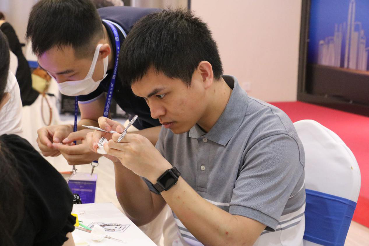 本次课程座无虚席,吸引了来自广东省各地25位年轻正畸医师。为了让来参加课程的学员学有所获,蔡教授精心准备讲课内容,课程涵盖唇侧和舌侧矫治生物力学对比、个性化舌侧矫治方案设计要点、舌侧托槽设计要点、基本治疗步骤等多个重点话题。在培训过程中蔡教授注重引导思考,通过大量案例分享,深入浅出,循循善诱,学员听课情绪高涨,现场气氛热烈,积极提问,蔡教授亦都一一予以耐心解答,同时通过实操训练,有效保障了理论转化为应用的效果。“希望每一位正畸医生都能因掌握舌侧矫正技术而获得更长足的发展,在行业内脱颖而出!”蔡教授在课程结束后表达了对学员的期待与祝福。