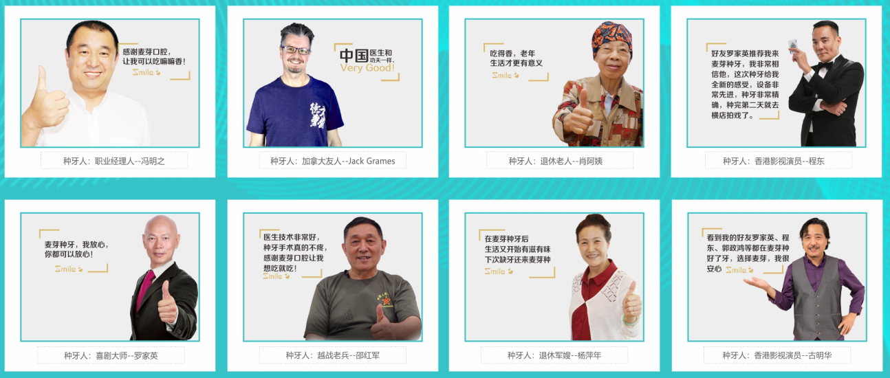 “医生技术很好,也给了我胆量,整个过程很舒服!我非常愿意介绍麦芽口腔给我身边的想要看牙的朋友们。”罗家英畅谈在麦芽口腔种牙的感受。据悉,罗家英的好朋友,香港著名演员古明华、程东都先后来到麦芽口腔,接受智能数字化精确种植牙,摆脱缺牙之苦。在此之前,香港《商报》特刊部主任苏伟、香港面包师郄春香女士,离开医疗条件极其发达的香港,选择了深圳麦芽口腔,选择了麦芽的智能数字化精确种植牙,六年间,麦芽口腔种植牙技术名动香江。