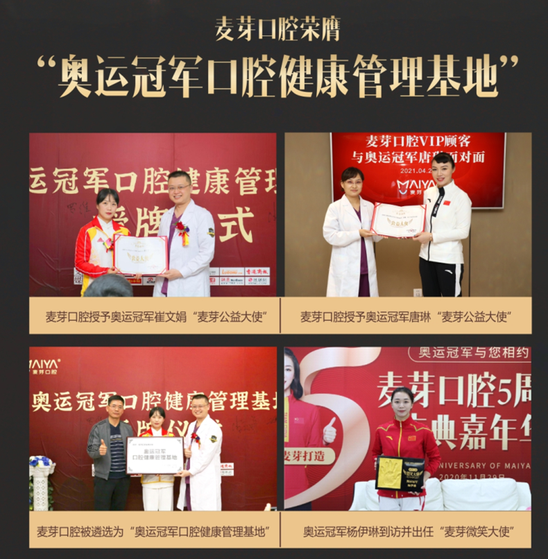 2021年初,凭借过硬的医疗质量、卓越的医疗服务,麦芽口腔被遴选为“奥运冠军口腔健康管理基地”,诸多奥运冠军来到麦芽口腔矫牙美牙,他们中,有北京奥运会中国女子体操团体冠军杨伊琳 、北京奥运会女子太极拳冠军崔文娟、悉尼奥运会女子柔道78公斤级冠军唐琳等,麦芽口腔成为了名副其实的“冠军医院”,冠军微笑,麦芽打造。