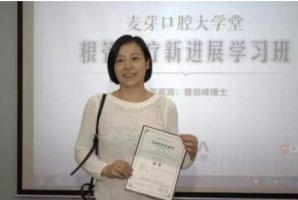 来自深圳博爱医院正畸科的周悦医生在学习班结束后领到由麦芽口腔大学堂颁发的结业证书
