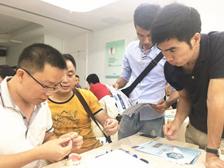 下午,博士、教授、主任医师刘长虹详细阐述了骨增量技术的技术难点及注意事项,之后,便带领大家进行了现场模拟骨块的种植操作环节,将一天所学的理论知识付诸实践,在老师们的真人示教下,学员们一步步学会了如何操作及处理,虽然不时的遇到一些困难,但在老师不不厌其烦、一遍遍的讲解下,现场学员们掌握了该项目的技术难点及核心。